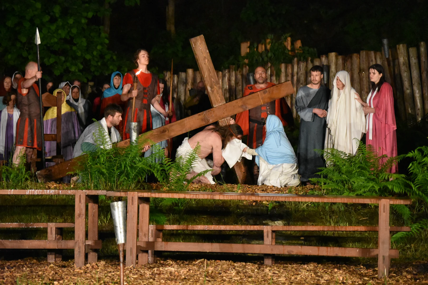 Představení v Hořicích na Šumavě se odehrává v malebném prostředí přírodního amfiteátru pašijového divadla. Hraje se pod širým nebem za každého počasí.